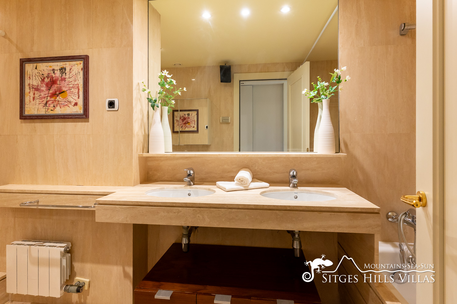 Salle de bains 1 – Salle de bains attenante – baignoire, douche séparée, double lavabo, bidet et toilettes.