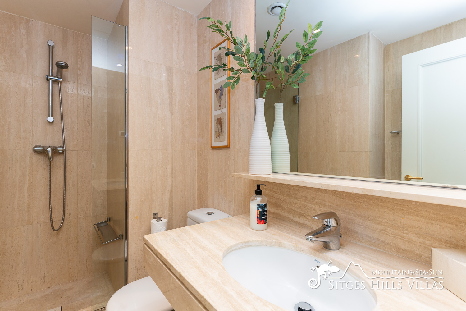 Salle de bains 3 – Douche à l’italienne, lavabo et toilettes.